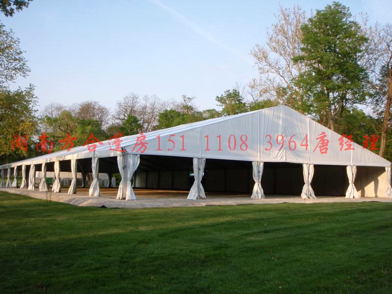 湖南方合篷房技術(shù)公司可供銷售與出租的篷房/大篷有坡頂(人字形),錐頂(尖頂),吊頂三種類型的篷房,坡頂篷房的規(guī)格有跨度3米,4米,5米,6米,7米,8米,9米,10米,12米,15米,18米,20米,21米,25米,30米,40米;尖頂帳篷的規(guī)格為3乘3米,4乘4米,5乘5米,6乘6米,8乘8米,10乘10米;吊頂帳篷的規(guī)格有3乘3米,4乘4米,5乘5米,6乘6米。公司擁有強(qiáng)大的帳篷設(shè)計(jì)生產(chǎn)能力,可按照客戶的需求定制各種規(guī)格,各種類型的帳篷/篷房。